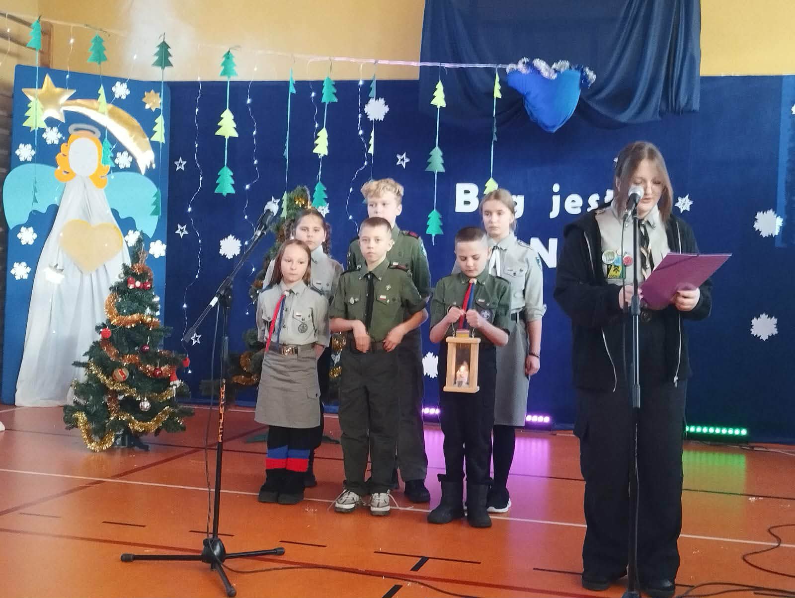 W dniu 19 grudnia społeczność szkolna spotkała się na wspólnym kolędowaniu. W pięknych strojach, z sercami pełnymi radości wybrzmiewały polskie kolędy i pastorałki. A nasi harcerze z Hufca Tomaszów Mazowiecki i Doliny Pilicy przekazali na ręce Pani Dyrektor "Światełko Betlejemskie".